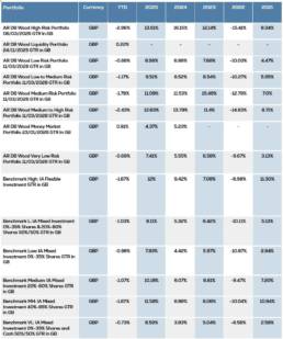 It is probably not a surprise that in March the portfolios lost all they had gained in the first two months of the year. Our lower risk portfolios out performed their benchmarks, with our higher risk portfolios slightly behind, having outperformed in 2025. Generally though, we are pleased with our portfolio returns given some of the repositioning that has been done during the quarter, which should bolster returns over the short, medium and longer term.
